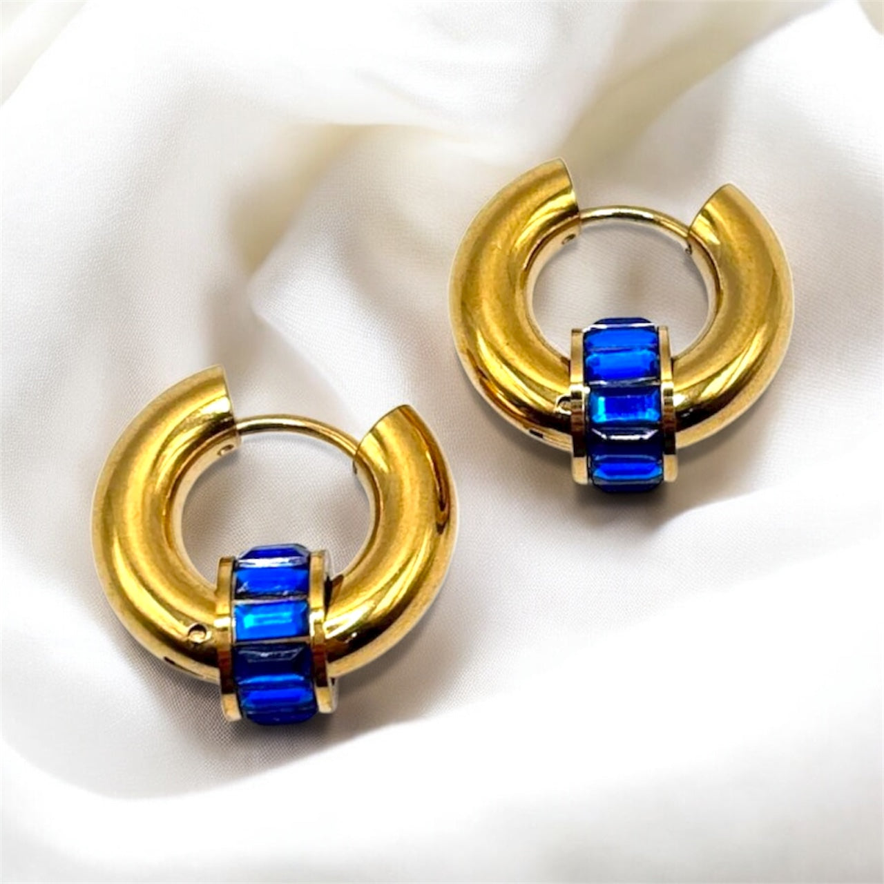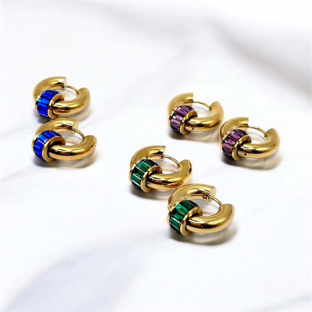 Bold gold meets radiant purple in these unique hoops. Designed for the playful spirit who loves a pop of color.