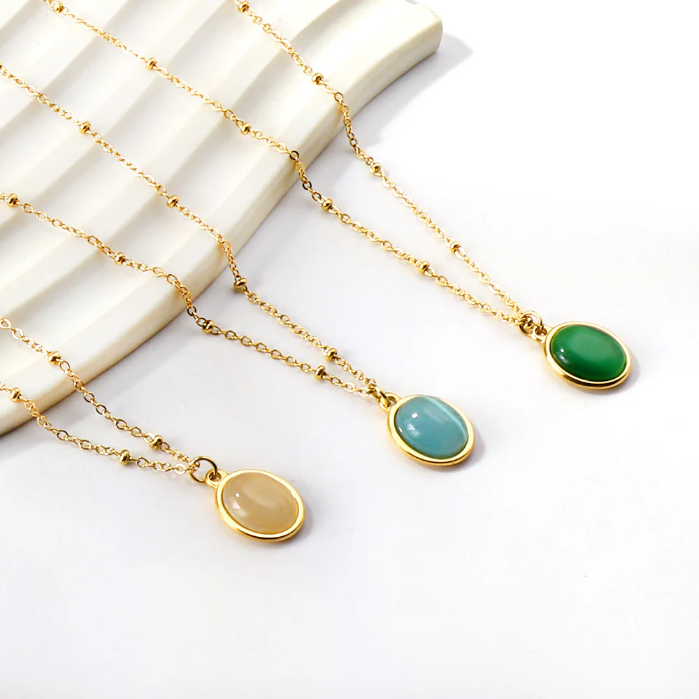 The Whisper Stone Necklace is a timeless pendant designed to capture the glow of nature’s beauty. Each piece features a radiant oval stone framed in gold, shimmering with soft, luminous hues that feel as calming as they are captivating. Available in three enchanting colors, perfect for layering, gifting, or collecting all your favorites. Whether you’re drawn to the serenity of aqua, the elegance of white, or the warmth of another shade, this necklace adds a refined yet effortless touch to any look.